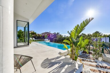 Moderne enebolig på ett plan med utleiedel/underetasje med sjøutsikt