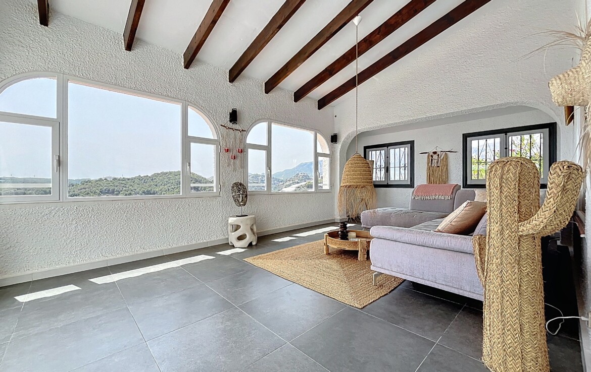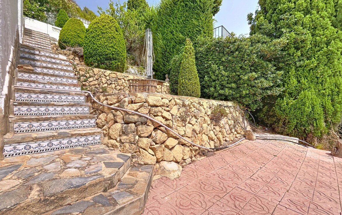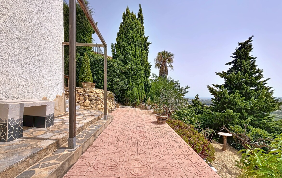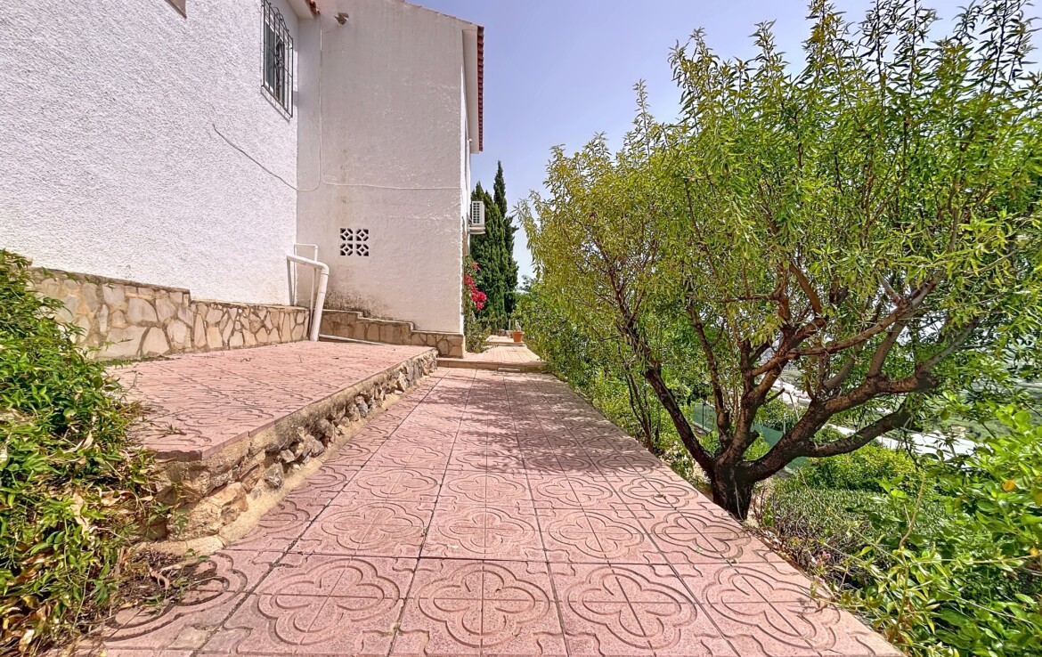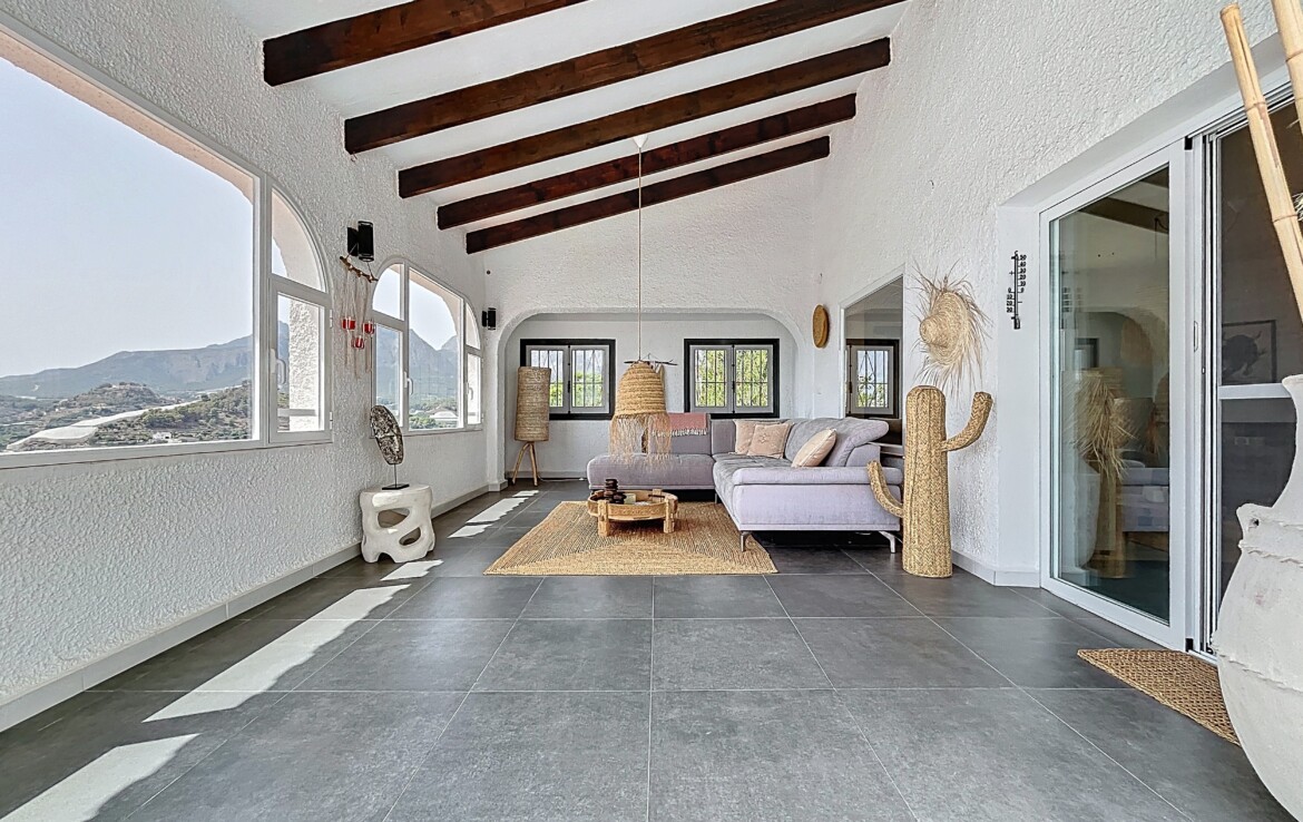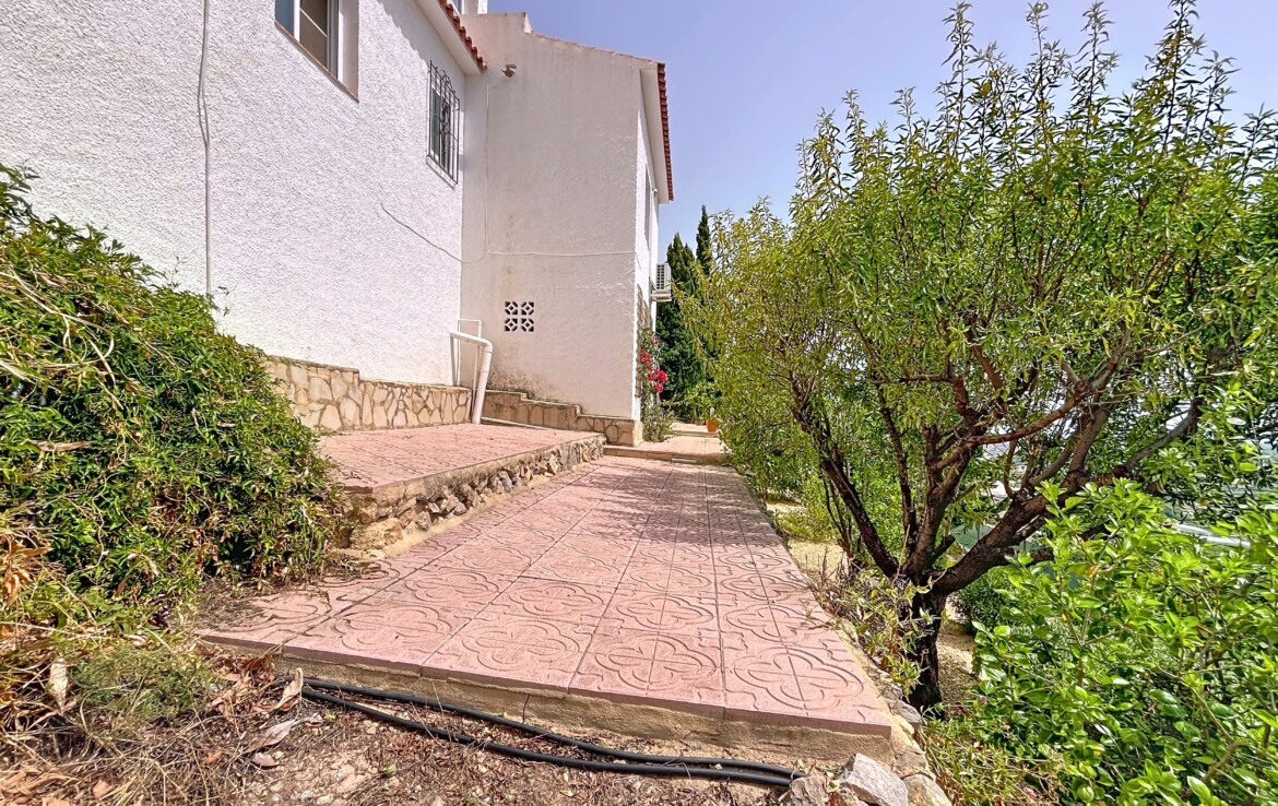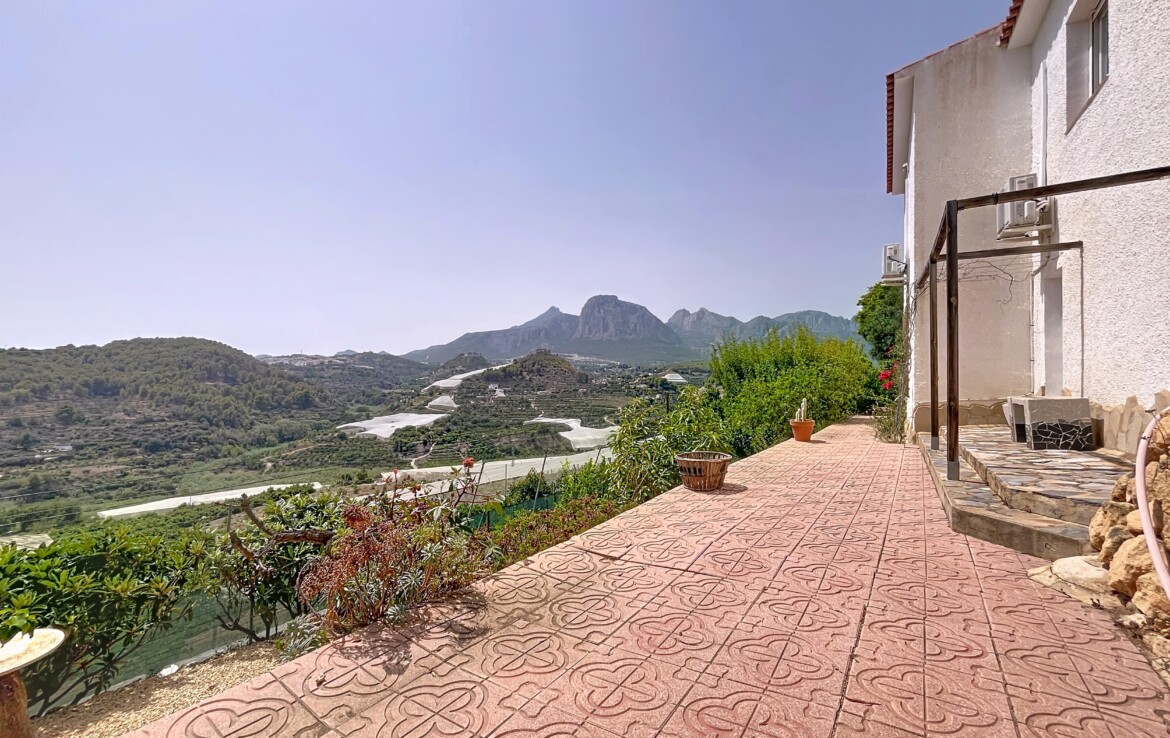 This beautiful detached chalet with a large plot and panoramic views is located in a privileged area of Callosa d’En Sarrià, close to all amenities. The property is spread over two floors: