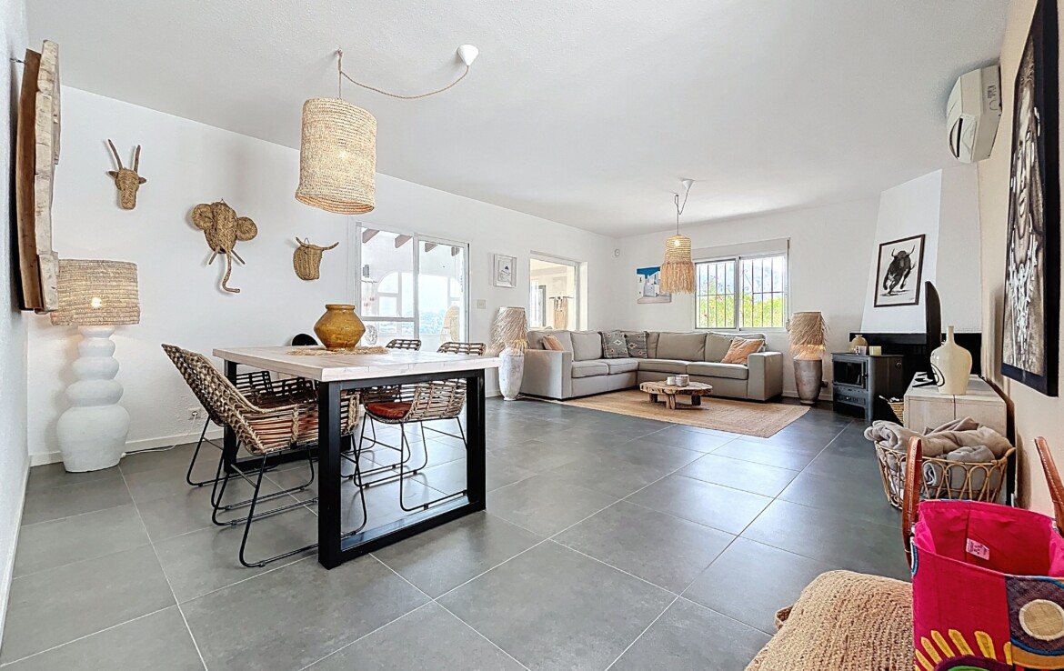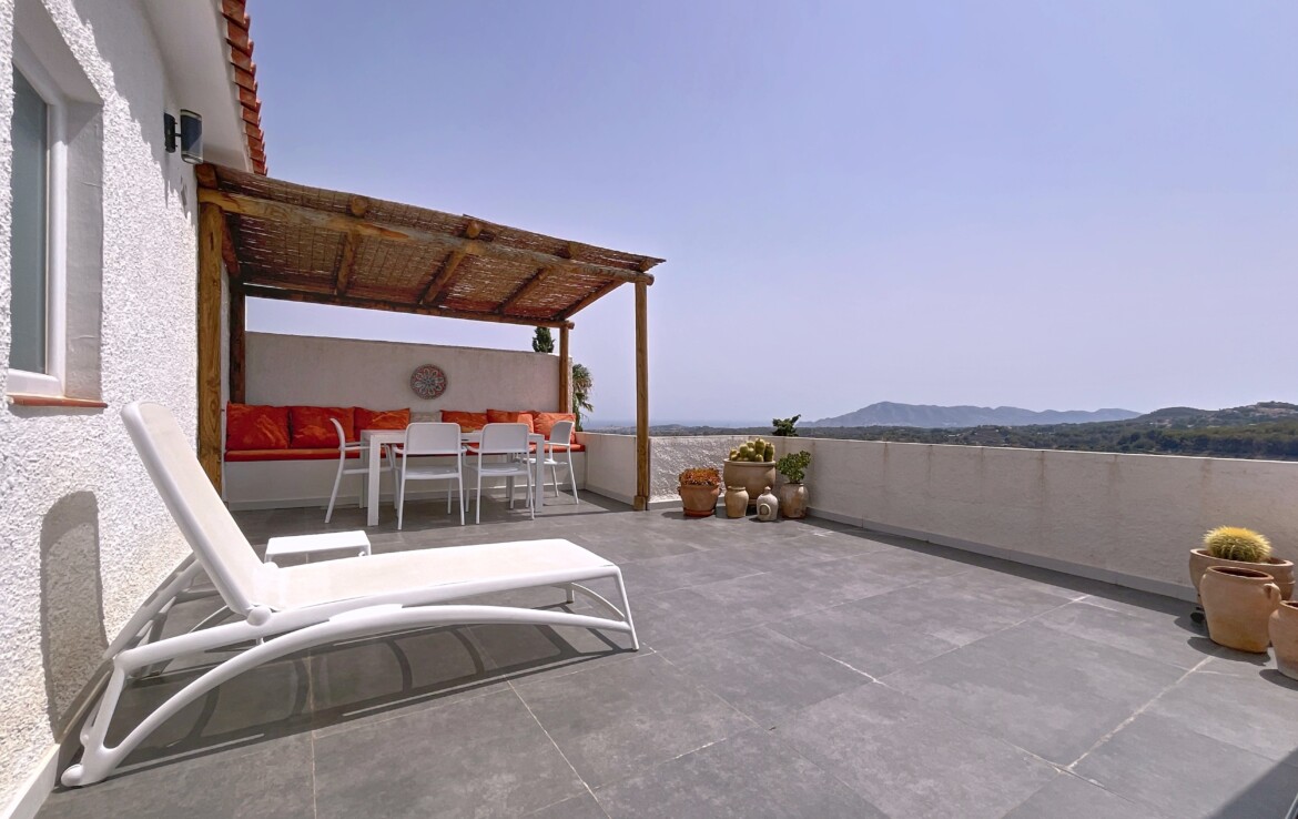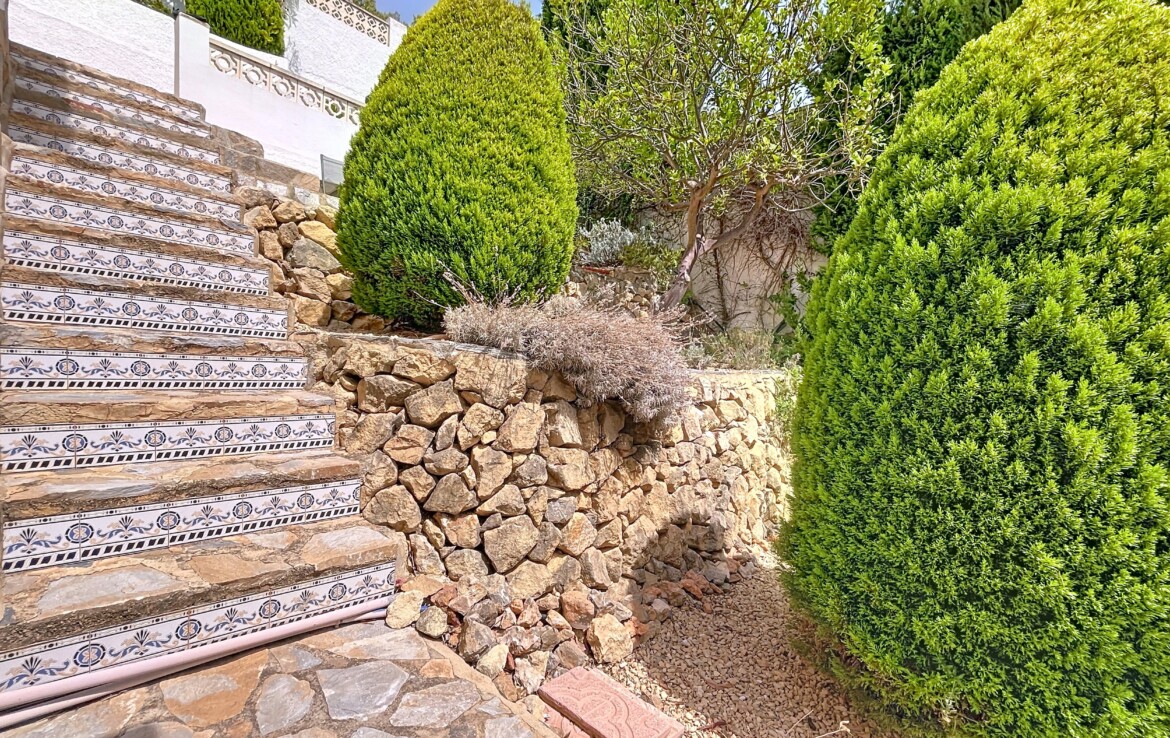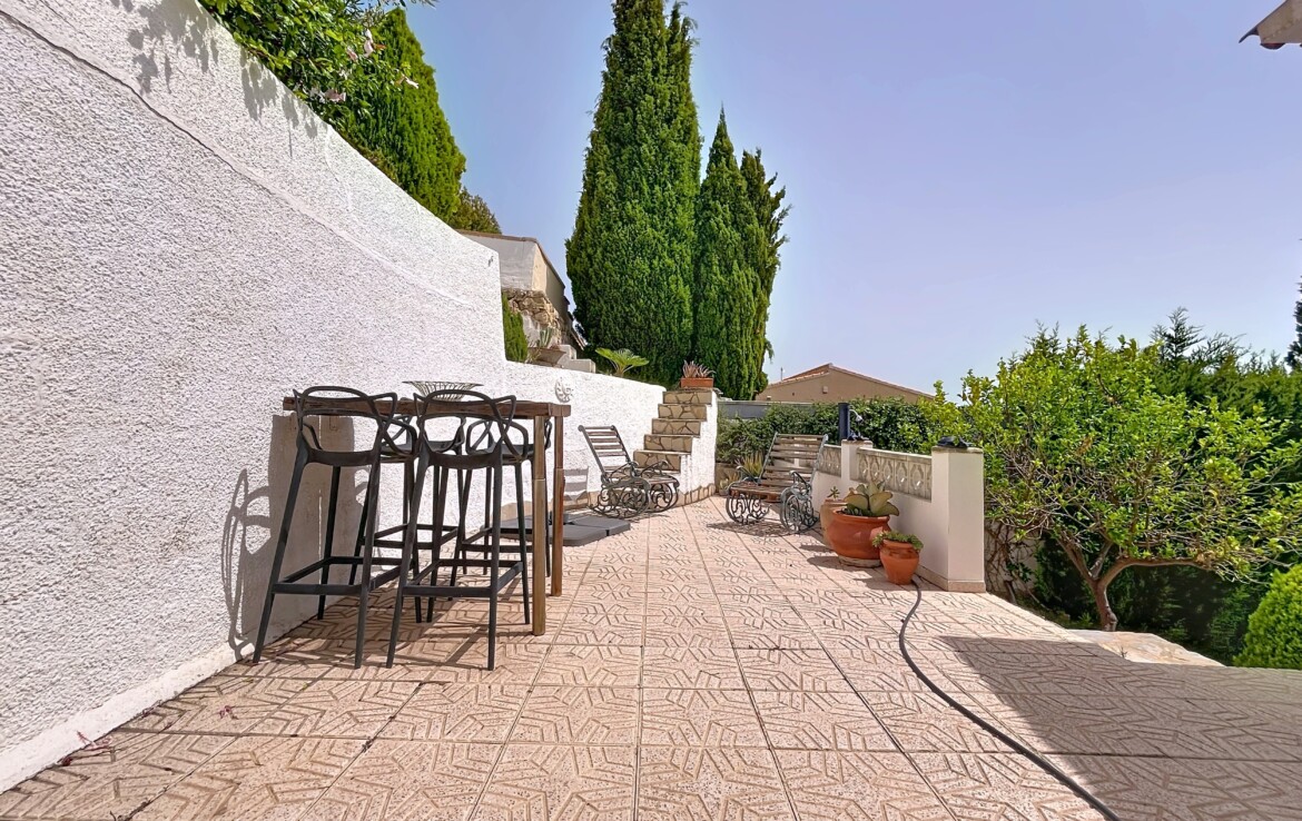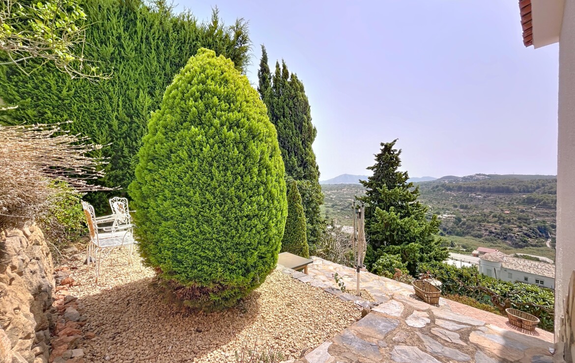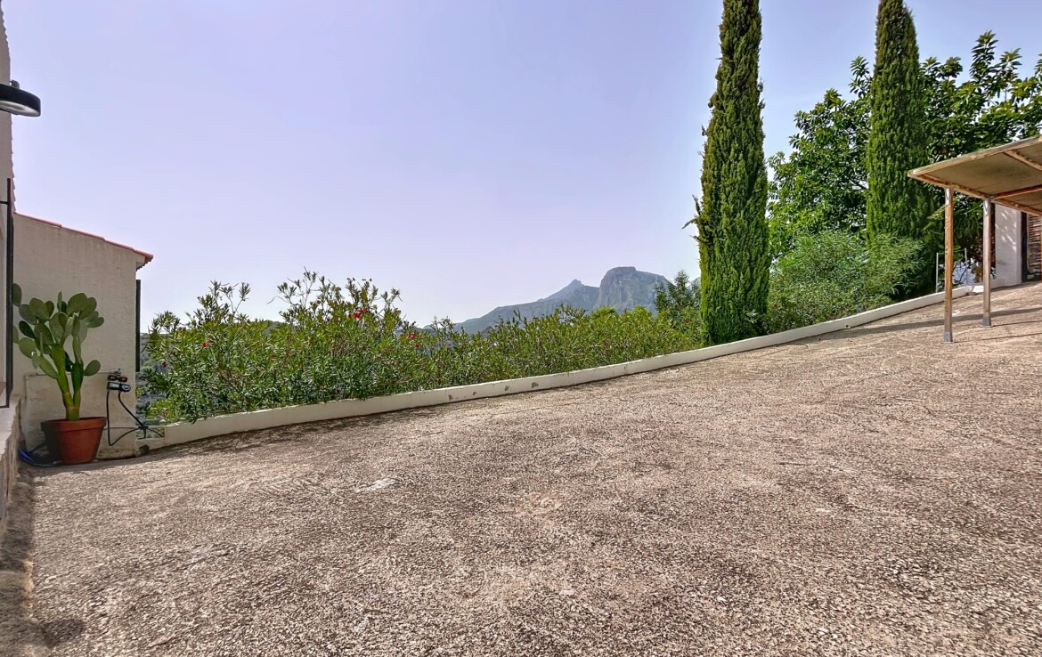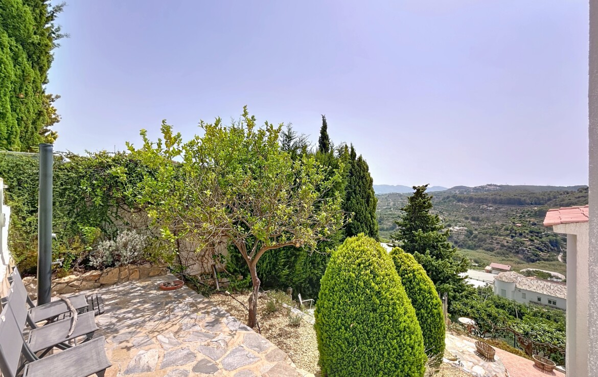 This beautiful detached chalet with a large plot and panoramic views is located in a privileged area of Callosa d’En Sarrià, close to all amenities. The property is spread over two floors: