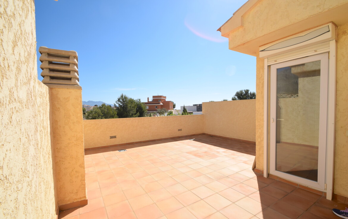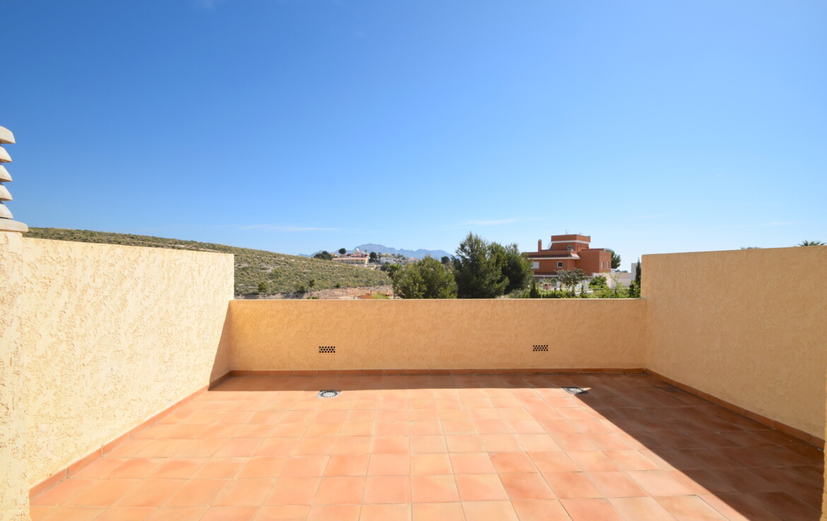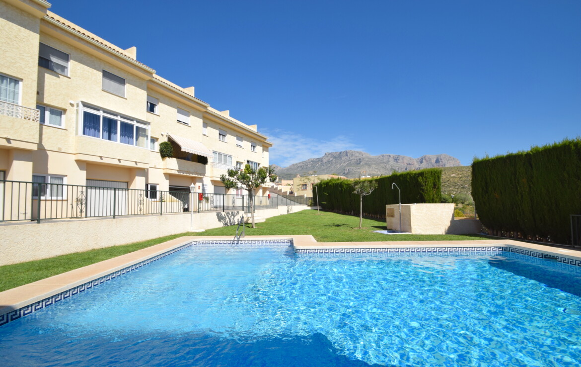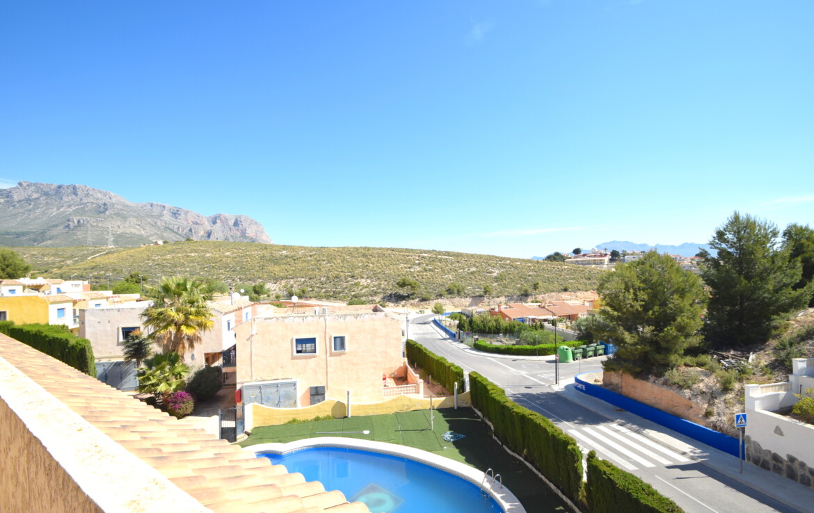 This fully renovated 134 m2 bungalow offers views of the sea and mountains, situated in a tranquil area with excellent connections to three municipalities: L’Alfas del Pi, Benidorm, and La Nucia, which belongs to the latter municipality.
